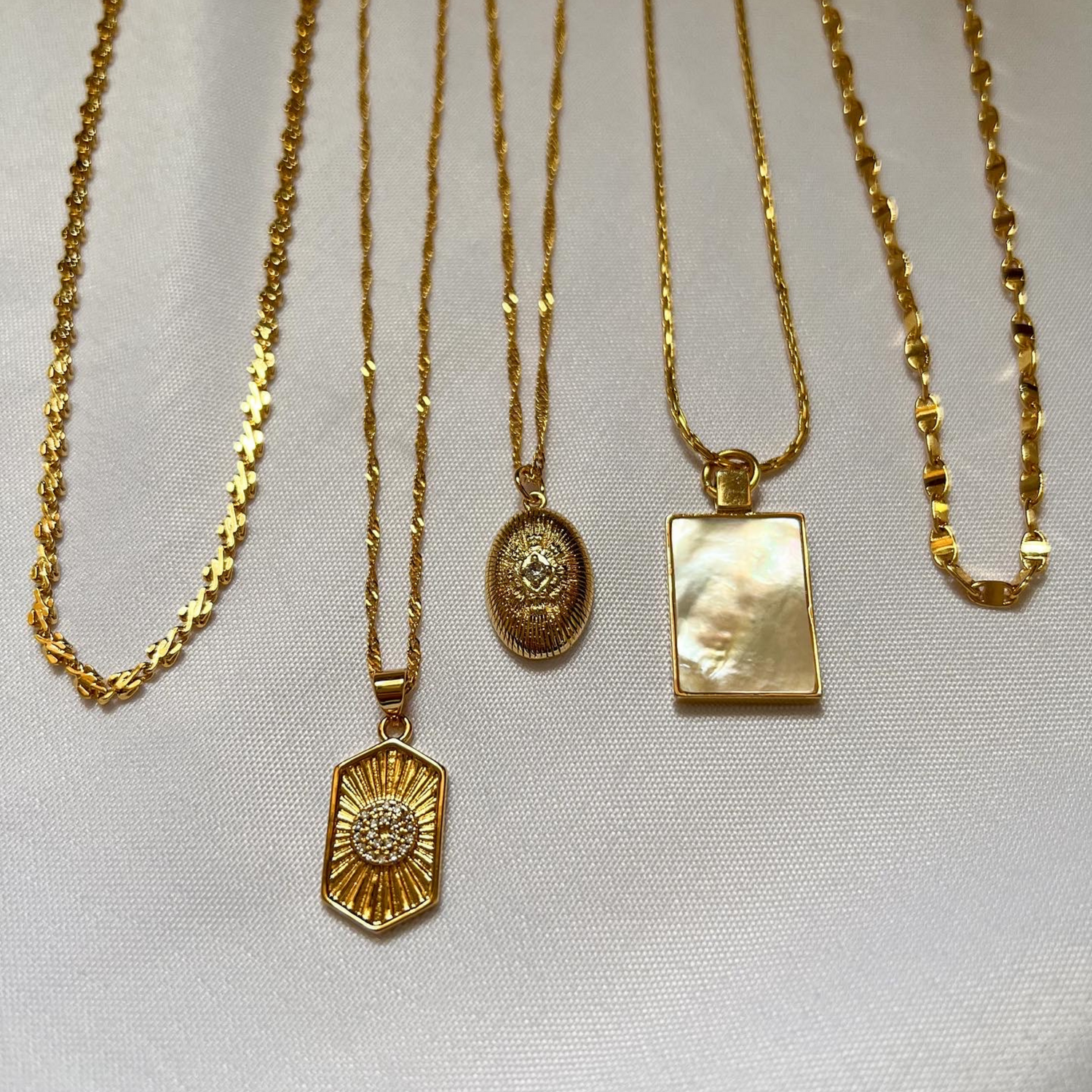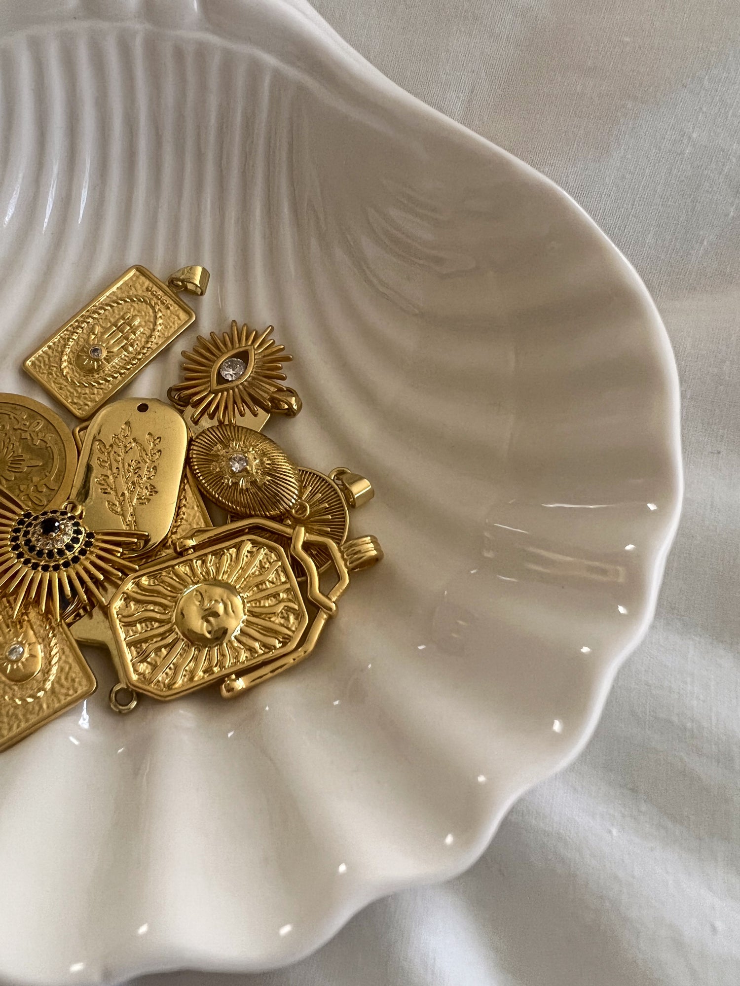 We recommend choosing chains in varying lengths, and textures to create greater depth. Select one charm for a simple and chic look, or select more than one charm for a stack totally your own.